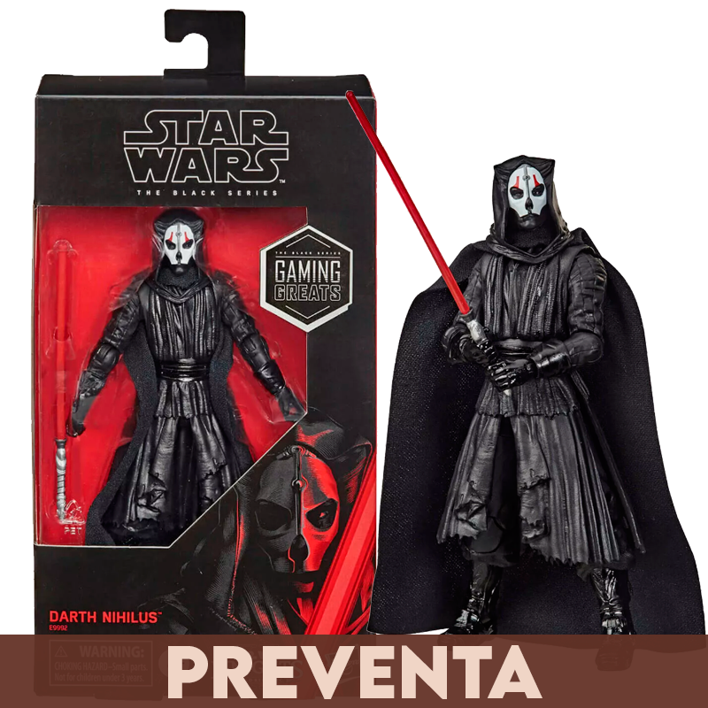 La figura de Darth Nihilus exclusiva de GameStop de Gaming Greats a escala de 6 pulgadas está detallada para parecerse al personaje del videojuego Star Wars Knights of the Old Republic II, con detalles premium y múltiples puntos de articulación.