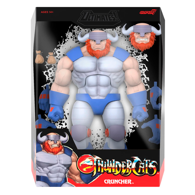 El Berserker™, Cruncher™, usa su impresionante fuerza para ayudar a sus compañeros piratas a llevar a cabo sus crueles y codiciosos planes en alta mar de la Tercera Tierra. Inspirada en la clásica serie animada de televisión, esta figura de Cruncher de ThunderCats ULTIMATES! a escala de 18 cm y altamente articulada viene en una caja con ventana ideal para coleccionistas, con cabeza y múltiples manos intercambiables, e incluye dos accesorios de bolsa. ¡Continúa la épica batalla para salvar (o destruir) la Tercera Tierra añadiendo la nueva figura de Cruncher ULTIMATES! a tu colección!