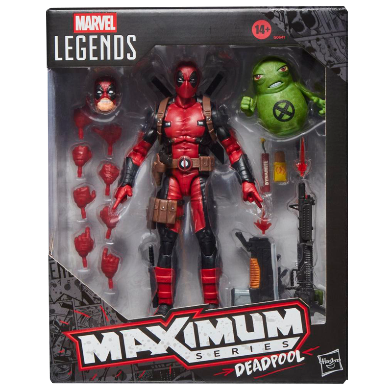 ¡Este Deadpool Maximum viene con VEINTICUATRO accesorios! ¿Cuchillo? Listo. ¿Dinamita? Listo. ¿Espadas? Listo. ¿Cabeza alternativa para posar mientras masticas una chimichanga? ¡Créelo, pastelito! Además, un montón de manos para señalar, hacer la señal de paz, levantar el pulgar y apretar el gatillo. Y no te olvides del buen Doop.