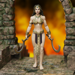 Bêlit es un nombre que resuena en las olas, un faro de terror y desafío para todos los que se atreven a desafiar su reinado como Reina de la Costa Negra. El mero avistamiento de su legendario y temible barco, la Tigresa, basta para que los marineros, desde Kush hasta Argos, prefieran las profundidades saladas en lugar de luchar contra su leal y ferviente banda de corsarios.
