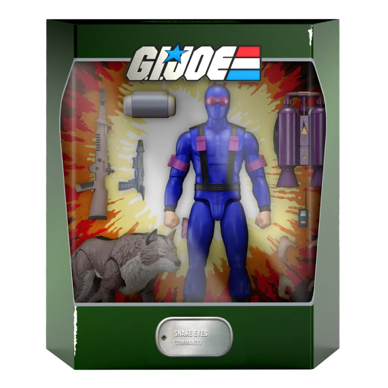 ***[CLASIFICADO]*** Puede que Snake Eyes no hable, ¡pero su figura de G.I. Joe ULTIMATES! habla por sí sola! Basada en su aparición al principio de Un verdadero héroe americano, esta figura de Snake Eyes ULTIMATES! a escala de 18 cm totalmente articulada viene con manos intercambiables y una variedad de accesorios, incluyendo múltiples armas, una mochila propulsora y su peludo mejor amigo, Timber. ¡Asegúrate de apretar el gatillo para la misteriosa y peligrosa figura de Snake Eyes ULTIMATES! para tu colección de G.I. Joe!