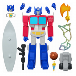 ¡No hay mejor manera de estrenar una nueva colección de Transformers que con el líder de los Autobots, Optimus Prime! Inspirada en su aspecto de la serie animada original de G1, esta figura de acción de lujo de 19 cm altamente articulada se fabrica a medida e incluye diversas piezas intercambiables únicas, como su cabeza de juguete G1, su mochila propulsora, una tabla de surf y una pelota de baloncesto (!) para recrear el partido de baloncesto de Optimus Prime del episodio "The Master Builders", atrapar una ola gigante como en "The Ultimate Doom" o controlarlo con restricciones de Energon como en "SOS Dinobots". Su increíble conjunto de accesorios también incluye un hacha de Energon, una matriz de liderazgo y un lanzador de iones. Por último, pero no menos importante, ¡Optimus Prime viene acompañado de una miniatura de Spike Witwicky!