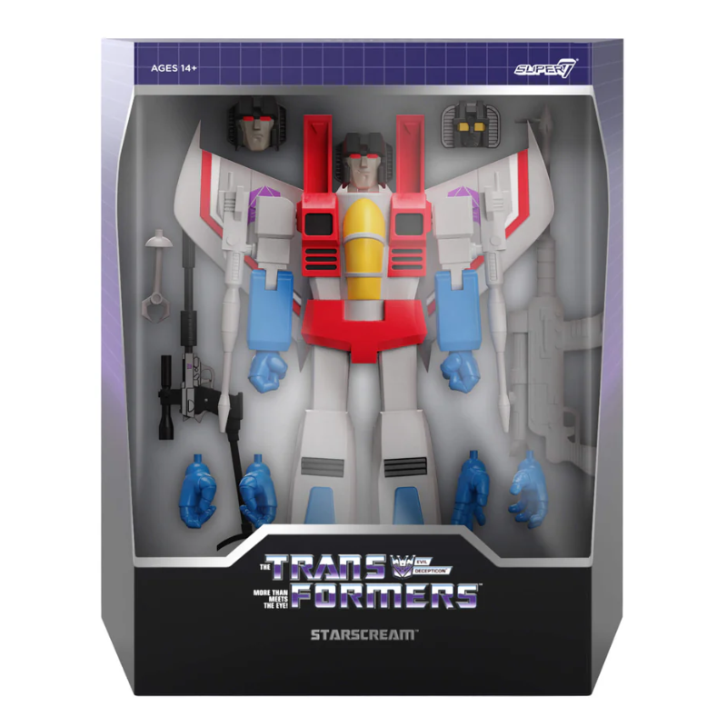 Con compañeros como Starscream, ¿quién necesita enemigos? Traicionero, ávido de poder y ambicioso, Starscream a menudo sabotea los planes de los Decepticons para lograr sus propios objetivos. Esta figura de Starscream de Transformers ULTIMATES! a escala de 18 cm, altamente articulada y con intrincados detalles, está inspirada en su apariencia G1 e incluye múltiples cabezas y manos intercambiables, además de diversos accesorios, como un cubo de Energon y una pistola Megatron. Es el personaje que amas odiar, ¡y sabemos que esta figura de Starscream de Transformers ULTIMATES! hecha a medida te encantará tanto que odiarás la idea de perdértelo!