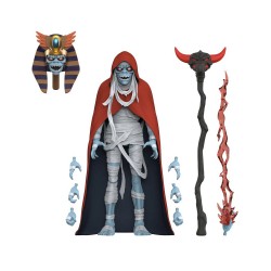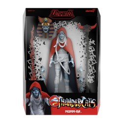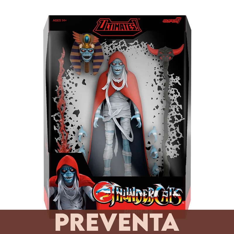 Envuelto en poderosa magia maligna, un demonio-sacerdote que cambia de forma toma la forma de una figura de Mumm-Ra ULTIMATES!. Inspirada en el personaje de ThunderCats que habita en la Pirámide Negra, esta figura de 18 cm altamente articulada presenta detalles de esculpido y pintura de primera calidad que revelan a Mumm-Ra en su demacrada forma de momia. Muéstralo con varios accesorios, incluyendo cabezas, manos y bastón alternativos. Una caja con ventana ideal para coleccionistas presenta ilustraciones de Super7, inspiradas en la serie ThunderCats. Los simples mortales podrían temblar al ver a este siniestro personaje, pero solo los verdaderos fanáticos de ThunderCats se atreverán a darle nueva vida a esta figura de Mumm-Ra ULTIMATES! para que las aventuras continúen en su colección.