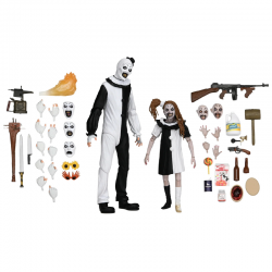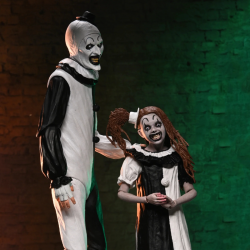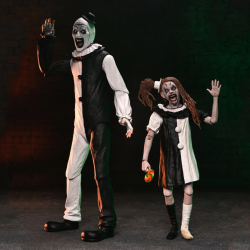 De la película Terrifier 2 de Damien Leone, NECA te trae este terrorífico pack doble de Art el Payaso y su sádica compañera, La Niña Pálida. Ambas figuras miden 18 cm y lucen sus clásicos trajes de payaso en blanco y negro.