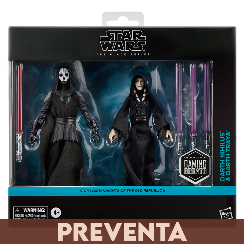 STAR WARS: KNIGHTS OF THE OLD REPUBLIC II: Este pack de 2 figuras de Darth Nihilus y Darth Traya está inspirado en el videojuego. Es un regalo ideal para fans y coleccionistas a partir de 4 años.